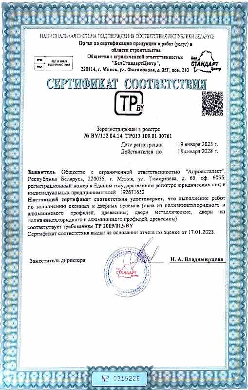 У вас есть сертификат для Pin-Up отделки и проведения работ по монтажу светопрозрачных конструкций?